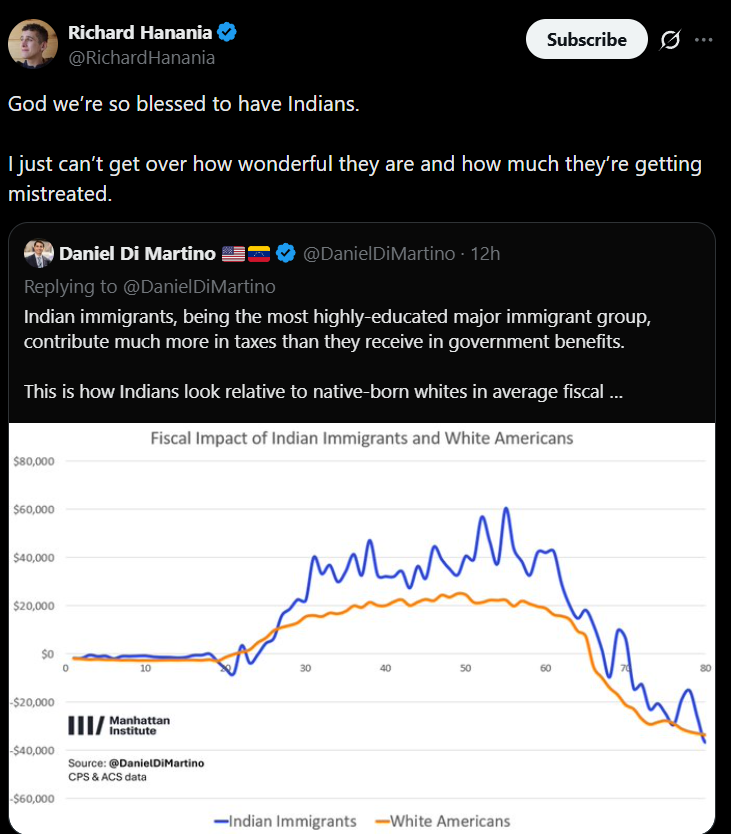 Indian immigrants are smart, highly skilled, and they contribute a lot of value to America's economy and America's GDP