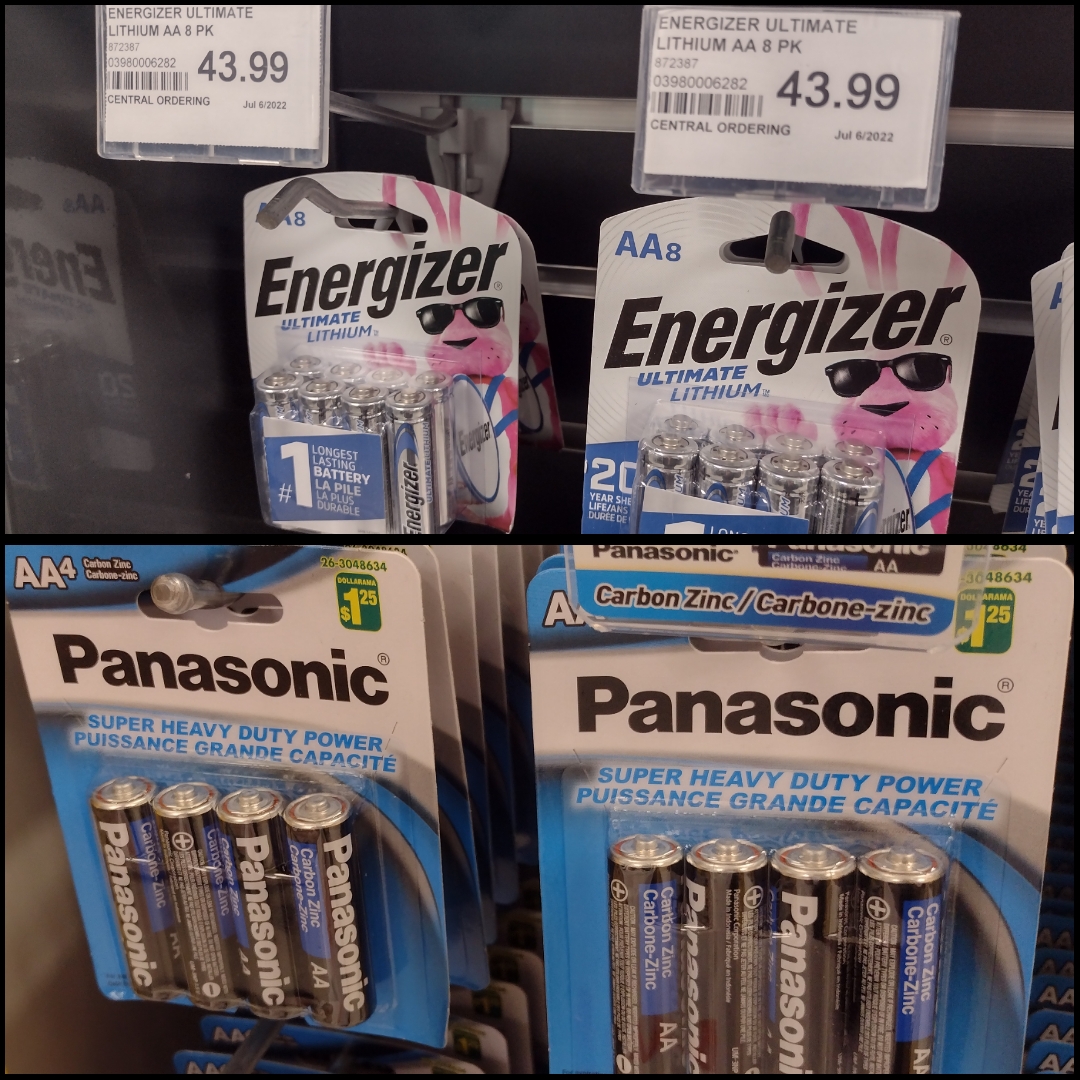 Same goes for batteries. Both of these images were taken within a 30 foot walk from each other.