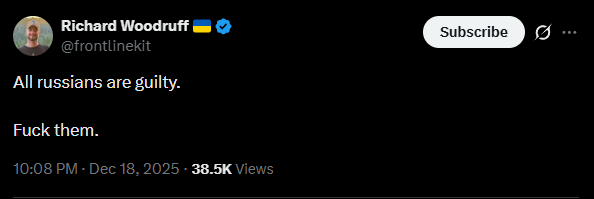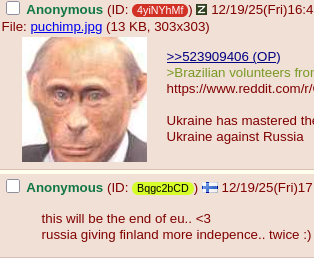 >>523909365>Brazilian volunteers from the R.U.G group of the 13th NGU Brigade Khartiia clearing Russian positions under fire in the center of Kupyansk. 01.12.2025https://www.reddit.com/r/CombatFootage/comments/1pqi4n7/brazilian_volunteers_from_the_rug_group_of_the/Ukraine has mastered the art of war. Get BRICStards to kill other BRICStards. Not even an isolated case anymore but we see thousands of Brazilians operating in Ukraine against Russia