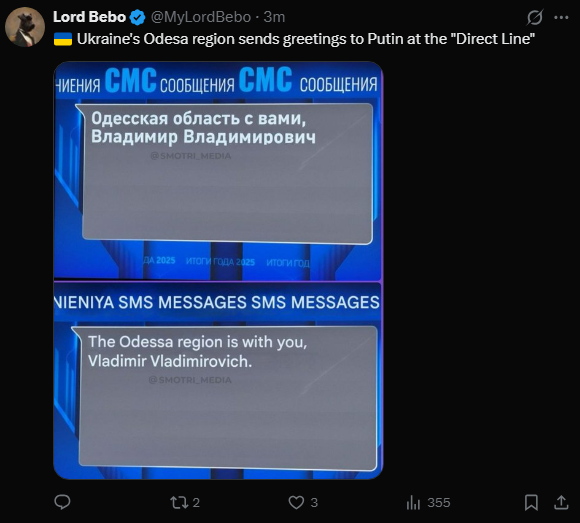 1000 for 26 dead exchanged like last time. Also, direct line with Putin is live. And last night an oil tanker was bombed in the Mediterranean and SBU published video during Direct Line. Also, Mayak bridge north of the Odessa estuary is under attack for follow up strikes, Geran and Iskander.