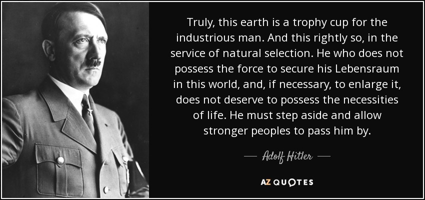 >>523984499Lmao retarded niggerman, Hitler was a social Darwinist. He believed only in strength and superiority through conflict. That's why, when the Germans lost the war, he gave an order to literally destroy Germany. In his eyes, if you lose, you don't deserve to live. The reason the Nazis hated the Jews is because they were, at the time, a nation-less people that could neither win nor lose and existed all across Europe in violation of this idea. Now, that Jews have their own nation, and now that they defend it through war and ethnic cleansing, he would be impressed with them and resist anyone trying to take their spoils away from them through international action. Same with China.