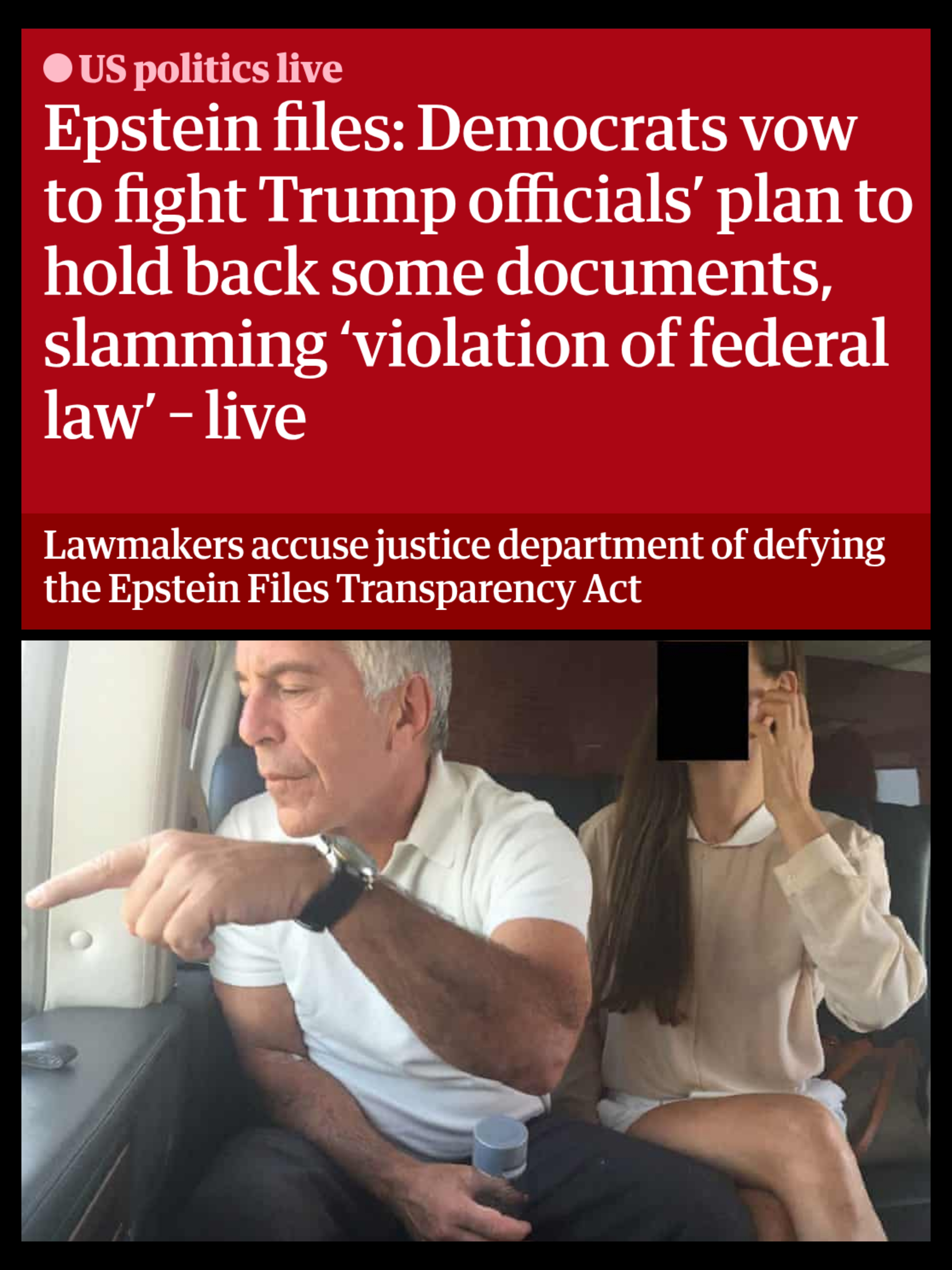 >legally need to release all Epstein files by midnight tonight>"Okay we will release some of them and then some other ones 'in the coming weeks' or whenever :)"Are you outraged? Or are you going to let it slide again?