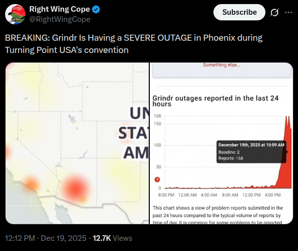 >>523924681The idea that a couple thousand more users in an area could lead to outages from a major app like Grindr is laughable.