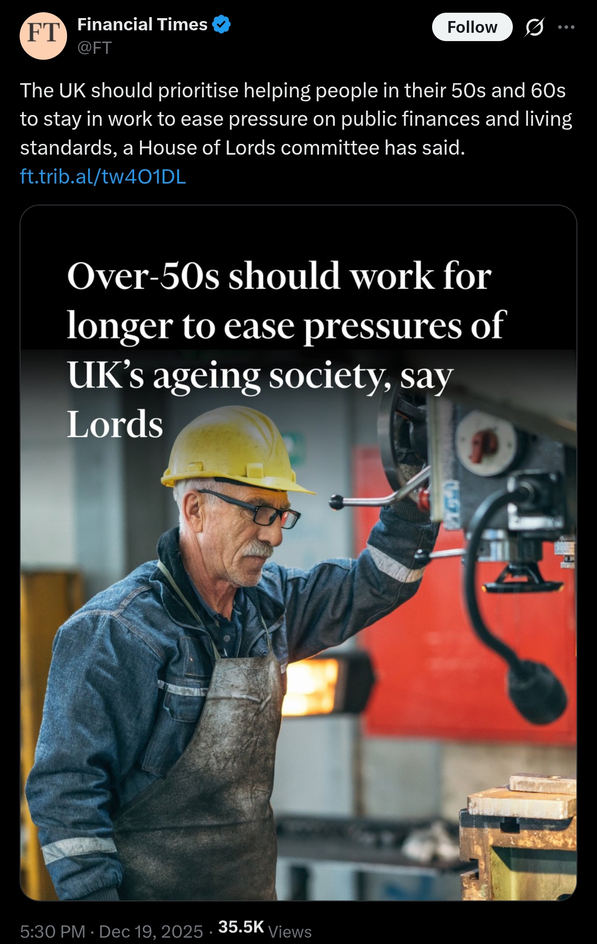 >>523927499>>Tell your grandpa to work longer>What a final solutionMy grandpa literally wanted to keep trucking to supplement his SSI, but had a heart attack and decided it's probably not a great idea since he'll be eating road slop again. He's 71 now and was debating again considering the absolute state of the economy
