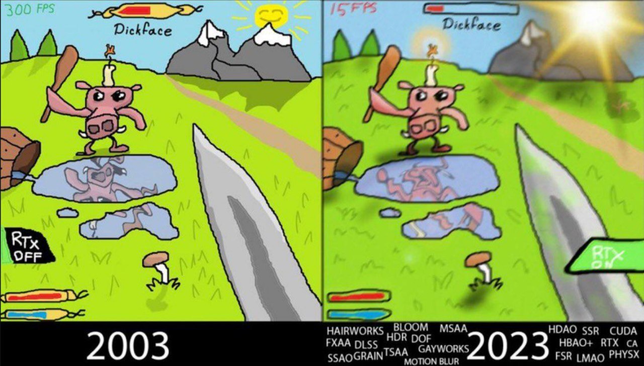 >>523931780Thanks god I saved this pic. RTX in nutshell. Also I do not like this this new trend (frame gen solving the shit performance).I played Sonic only on emulator, I never had any console before I bought a PS Vita. I do not want to start nostalgia blog...