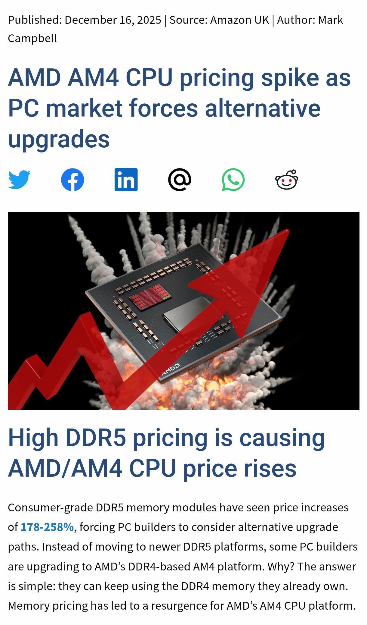 >>523932443Return to AM4 where the CPU prices rise? Also:>DDR4 RAM prices have seen significant increases in 2025, with specific consumer kits rising by 100% to over 180% since June, and professional/contract prices surging by 30% to 60% in just a few months.We. Are. Doomed.