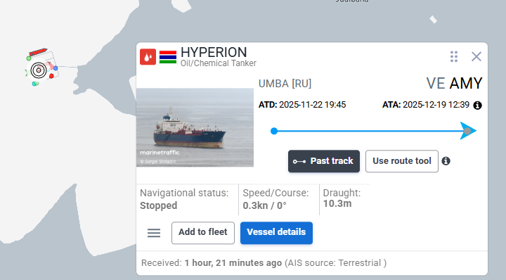 Since the "blockade" started, not a SINGLE sanctioned tanker has been stopped or seized. These are not just regular tankers, these are known shadow fleet tankers sanctioned by the US.>LYDIA N (Lilliam) arrives at Aruba OPL -> Amuay>OLINA turns off AIS near ABC islands -> Amuay>SOFOS arrives at Guyana OPL and turns off AIS -> JoseHYPERION, while initially reported to have changed course after the blockade announcement, arrived in Amuay early this morning with a shipment of fuel diluents for Venezuela's heavy crude.BLOCKADE CONFIRMED TOOTHLESS. NOTHING HAPPENING. TRUMP BACKING DOWN.