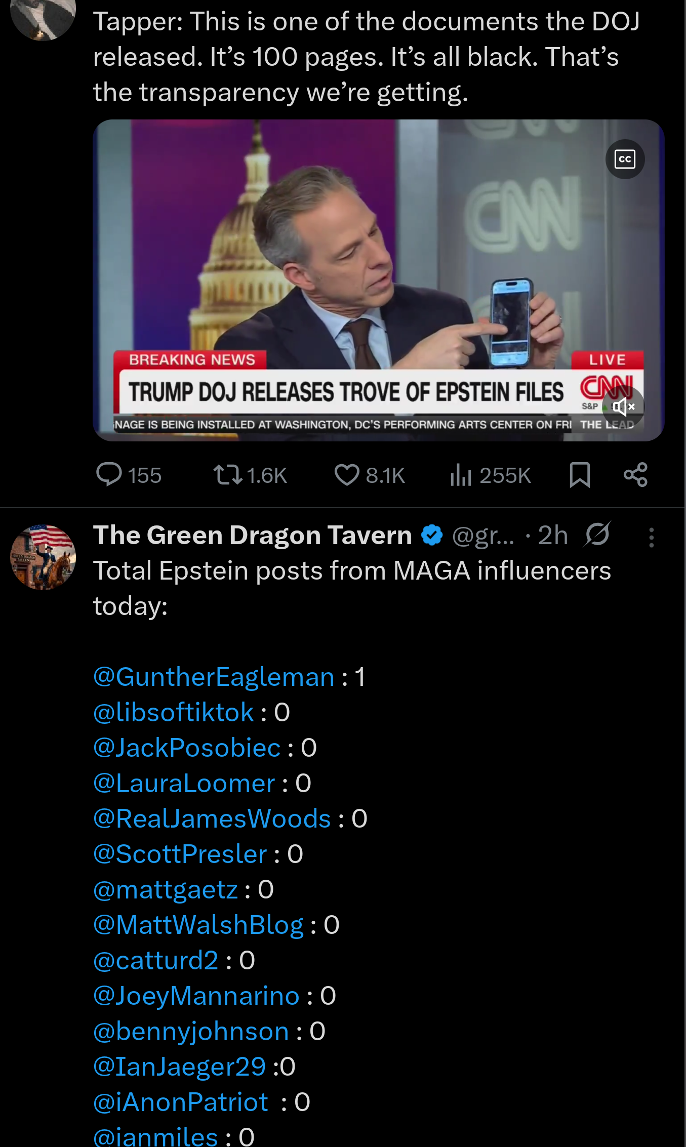 >bet you guys are real sorry that none of the files incriminate Trump! suckers!Definitely not what I voted for. Should have voted for Kamala so we’d have 0 transparency at all. Welp, now I know for next time, nothing > something. Live and learn.