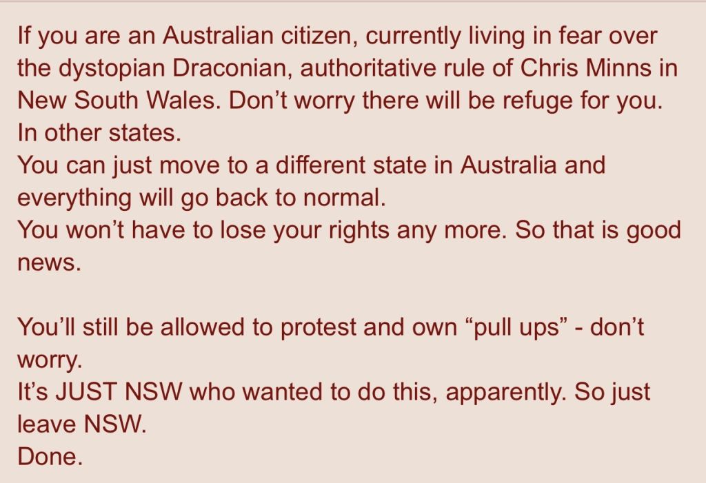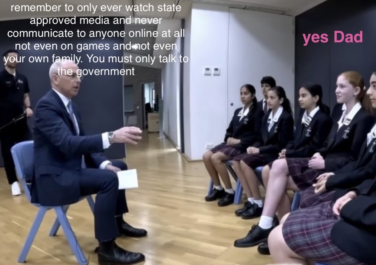 You will grow up shelteredIt will be illegal for you to make any friends on the InternetAnd you will not be allowed to own anything that you can defend yourself withYou will be a good little peasant that stays in your box. You will own nothing and you will be happy.This is what New South Wales and Chris Minns wants for the future population of Sydney. This is what they really think of you.