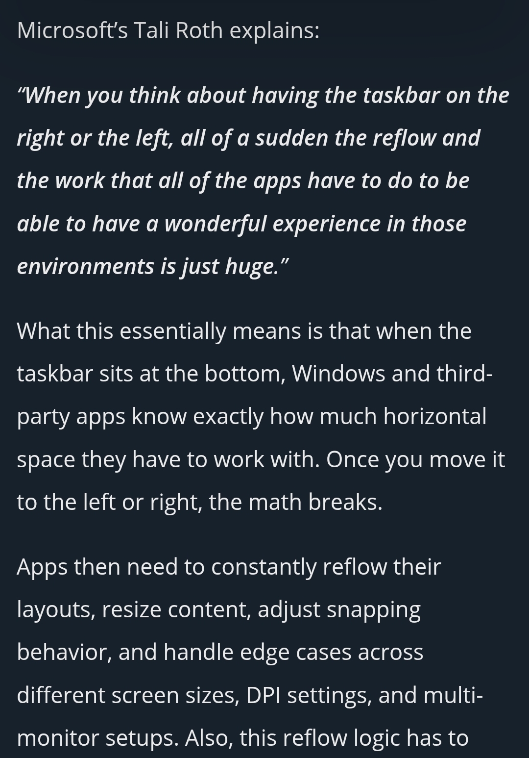 >>523959618https://www.windowslatest.com/2025/12/19/why-you-cant-move-windows-11-taskbar-like-windows-10/