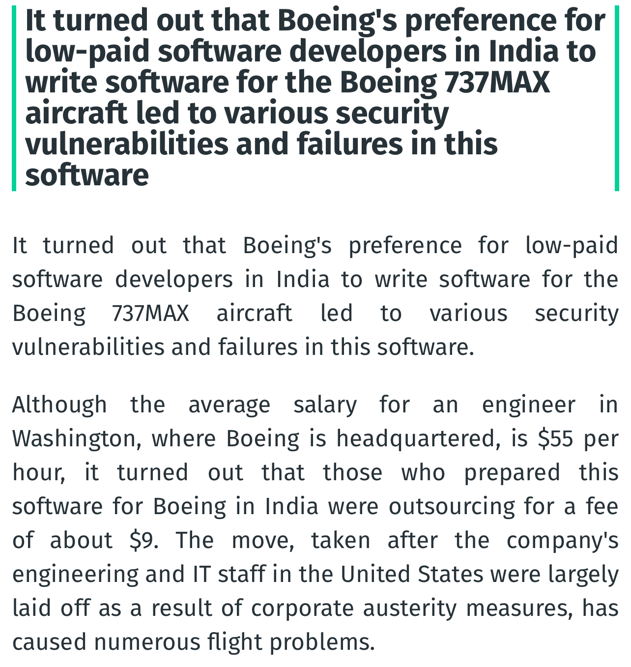 >>523960557>It's a solved problem. Why would they have an issue with it?!?H-1B visas from a country with a mean IQ of 85.