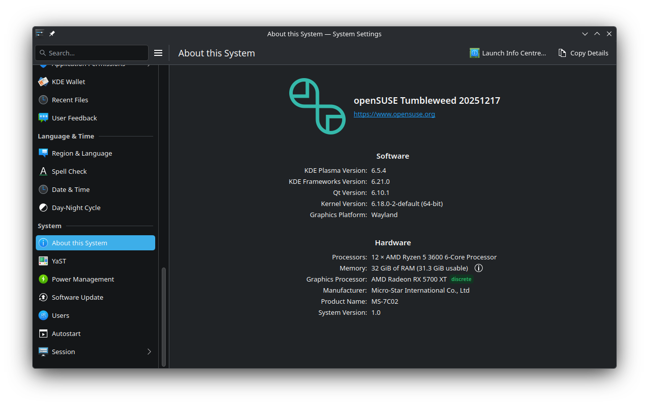 >>523971041>I kind of want to try this specific distro nextTo be honest I can't recommend it wholeheartedly.Firstly you can't just boot in a live environment, secondly it's been ages since I've had to deal with package conflicts yet they happen in SUSE tumbleweed. YaST is neat though, and despite being a rolling distro it hasn't broken yet. Still for most people I'd say stick to Fedora, it's more popular and that's helpful, for example there are automated scripts to install Affinity 3 etc.