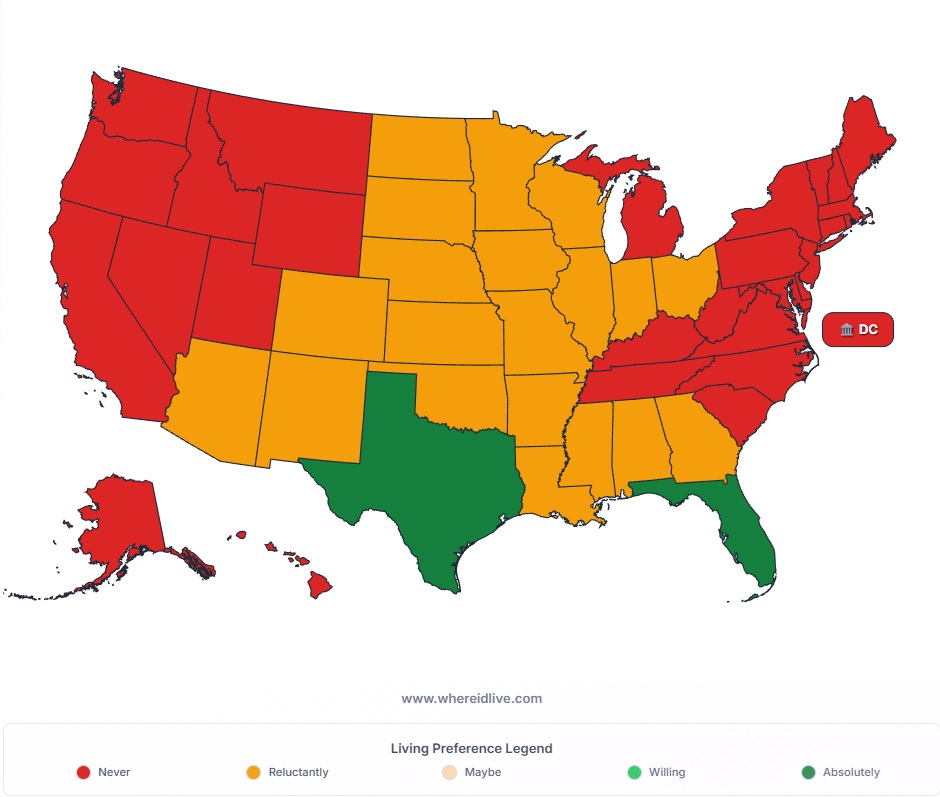 Why is the east coast red? I understand the boring ass western statesI was hoping to escape the Midwest to the east coast it seems whiter