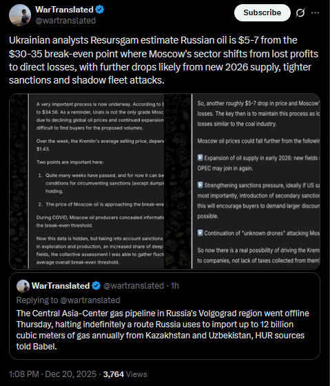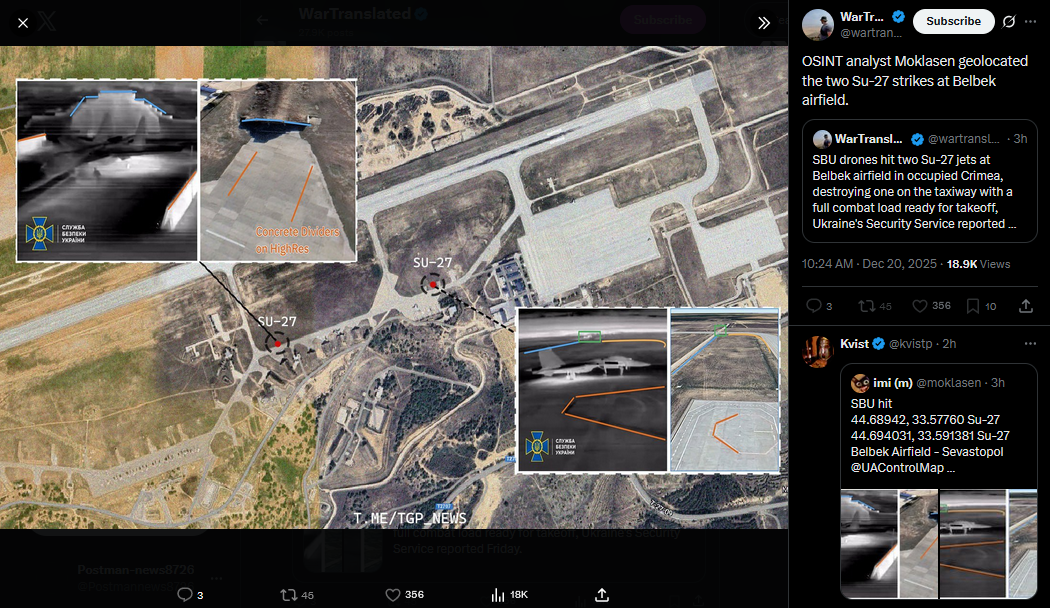 Previous: >>523975693Day 1,396 – Daily assessment: understandingwar.org/analysis/russia-ukraine/#research▶Latest>Prymary droned 2 Su-27 jets in Belbek aerodrome, 1 destroyed>Rubin-Class Boat Attacked by SOF in the Caspian Sea>Center gas pipeline sabotaged in Russia, DIU reports>3 pidor recon drones downed in Turkey>7th pidor oil tanker struck by SBU aerial drones in Med intl. waters - GRU general killed>Caspian oil platforms droned for 3rd time>EU leaders agree €90bn loan to Ukraine but without use of frozen rusnigger assets>IRBM Oreshnik is in Belarus since yesterday and is being deployed for combat service - potato man>Tanker in Rostov port likely attacked, firepetukhs are hosing>The naval port pier in Novorossiysk is closed due to AIDS>"The goals of the SMO will be achieved unconditionally. If Ukraine don't want to have a substantive discussion, then russia will liberate its historical lands on the battlefield." - monke>russian Minister of Defense once again claimed russia has fully occupied Kupyansk>The US is preparing new sanctions against russian oil in case putin refuses the peace deal>Germany has delivered two Patriot air defense systems, already pledged in August, as well as the ninth IRIS-T system to Ukraine - Pistorius>"The United States is ready to take on legal obligations regarding security guarantees for Ukraine, similar to NATO’s Article 5. This is progress. We will not repeat the mistakes of Minsk." - Merz▶Telegramrentry.org/telosint2023t.me/ukr_pics▶Intelt.me/DeepStateENodin.tradoc.army.mil/WEG (equipment explorer)ukr.warspotting.net (visually confirmed losses)▶Mapsdeepstatemap.live/enliveuamap.com/en▶DISPOSABLE SOLDIER (diary of a RU mobik)TOUR 1: files.catbox.moe/34fuhc.txtTOUR 2: files.catbox.moe/uj2wut.txtTOUR 3: files.catbox.moe/hmyd98.txtTOUR 4: files.catbox.moe/cdenxe.txt▶12 min of TZD in one ditch (Pokrovsk area) - 28 killedhttp://files.catbox.moe/sxbxfb.mp4