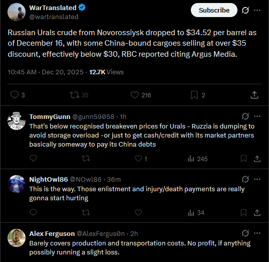 Sanctioned pidor tanker enters Venzuelan waters, written 11 o'clock last nighthttps://www.reuters.com/business/energy/sanctioned-naphtha-tanker-russia-enters-venezuelan-waters-others-dither-ship-2025-12-19/Unnamed tanker seized by the US coast guard, written 30 minutes agohttps://www.reuters.com/world/americas/us-interdicting-sanctioned-vessel-off-venezuelan-coast-officials-say-2025-12-20/HMMMMMMMMMMMMMMMMMMMMM