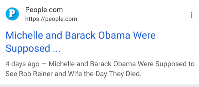 >>523993681The Obamas for some inexplicable reason are now television and movie producers. Also Bill Clinton now writes and acts in movies too.Could be they were meeting Reiner to discuss projects. But some people think Reiner may have been seen as a loudmouth who couldn't be contained and decided to take him out, framing the drug addict son for the murder. If so a prearranged dinner with the Obamas would mean nobody would be suspicious of someone unknown hanging around the property