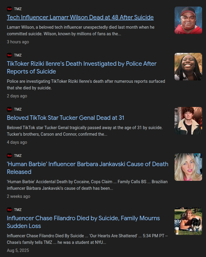 Why are so many "influencers" deciding to off themselves?