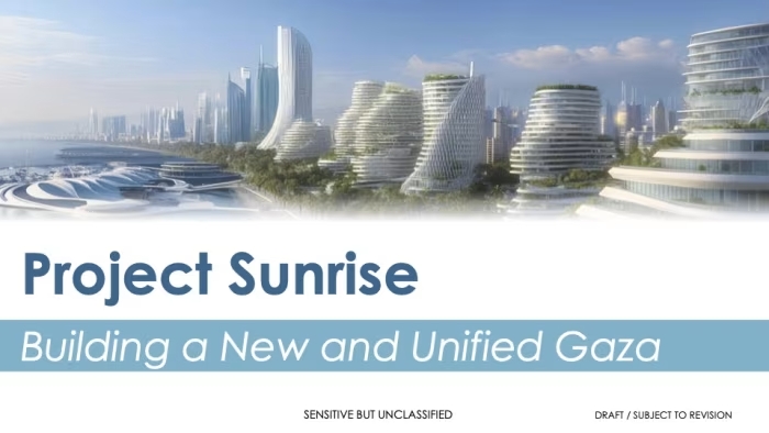 >The Trump administration is pitching a plan called Project Sunrise to turn war-damaged Gaza into a futuristic “Riviera of the Middle East,” with luxury resorts, smart infrastructure, and high-speed transit.>The proposal was drafted by Jared Kushner and Steve Witkoff and shared with potential donors including Gulf states, Türkiye, and Egypt. >It envisions a $112 billion, 10-year rebuild, with the U.S. acting as an “anchor,” covering about 20% of costs through grants and debt guarantees.>Source: WSJalhamdulillah!