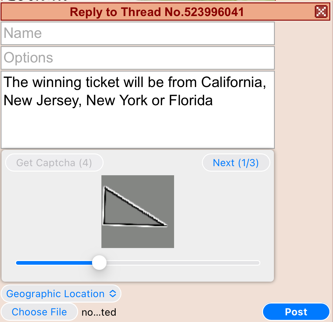 >>523996041>Lottery schizopostingLol I'm bored, may just blow 2 bucks or so on this stupid shit later