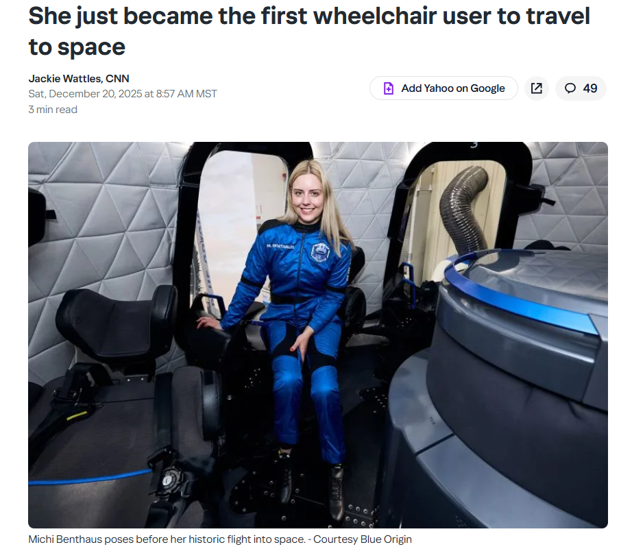 Remember this the next time you chuds try to argue women's equality was a mistake. Have *YOU* ever done anything half as inspiring?!https://www.yahoo.com/news/articles/she-just-became-first-wheelchair-155731888.html?fr=sycsrp_catchall