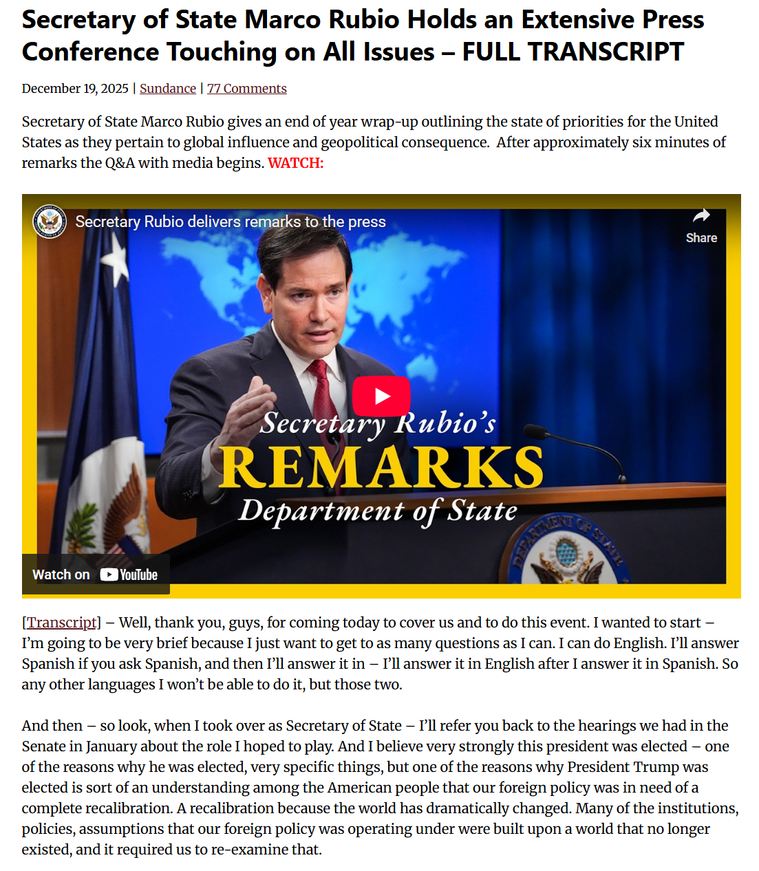 Big Marco longposted at the media for a while today https://theconservativetreehouse.com/blog/2025/12/19/secretary-of-state-marco-rubio-holds-an-extensive-press-conference-touching-on-all-issues-full-transcript/