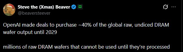 >one megacorp just casually buying up 40% of the total global supply of RAMyeah that seems reasonable