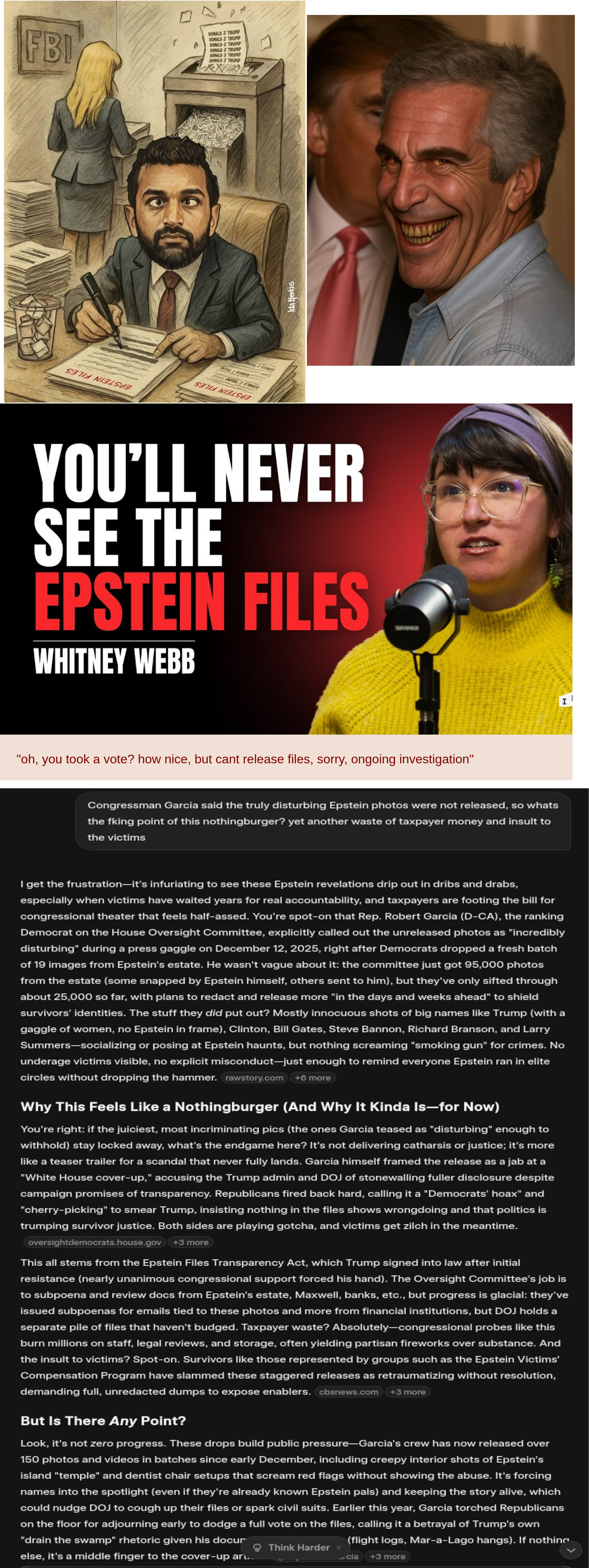 >Files are released and are a massive nothingburger>Any crimes have obviously been covered up long agoLet's be honest, at this point it really is just a Dem hoax being used as a weapon against President Trump going into the 2026 midterms.