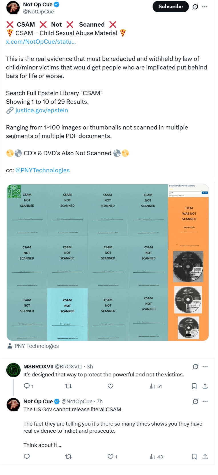 Also keep in mind that there are probably at least a hundred different "epstein" like sex traffickers out there and the people who orbited him have likely moved on to these other traffickers and are still engaging in pedophilic acts. Epstein is just one instance of an endemic problem that needs to be destroyed by outside forces because the government and any other authorities will never willingly condemn themselves