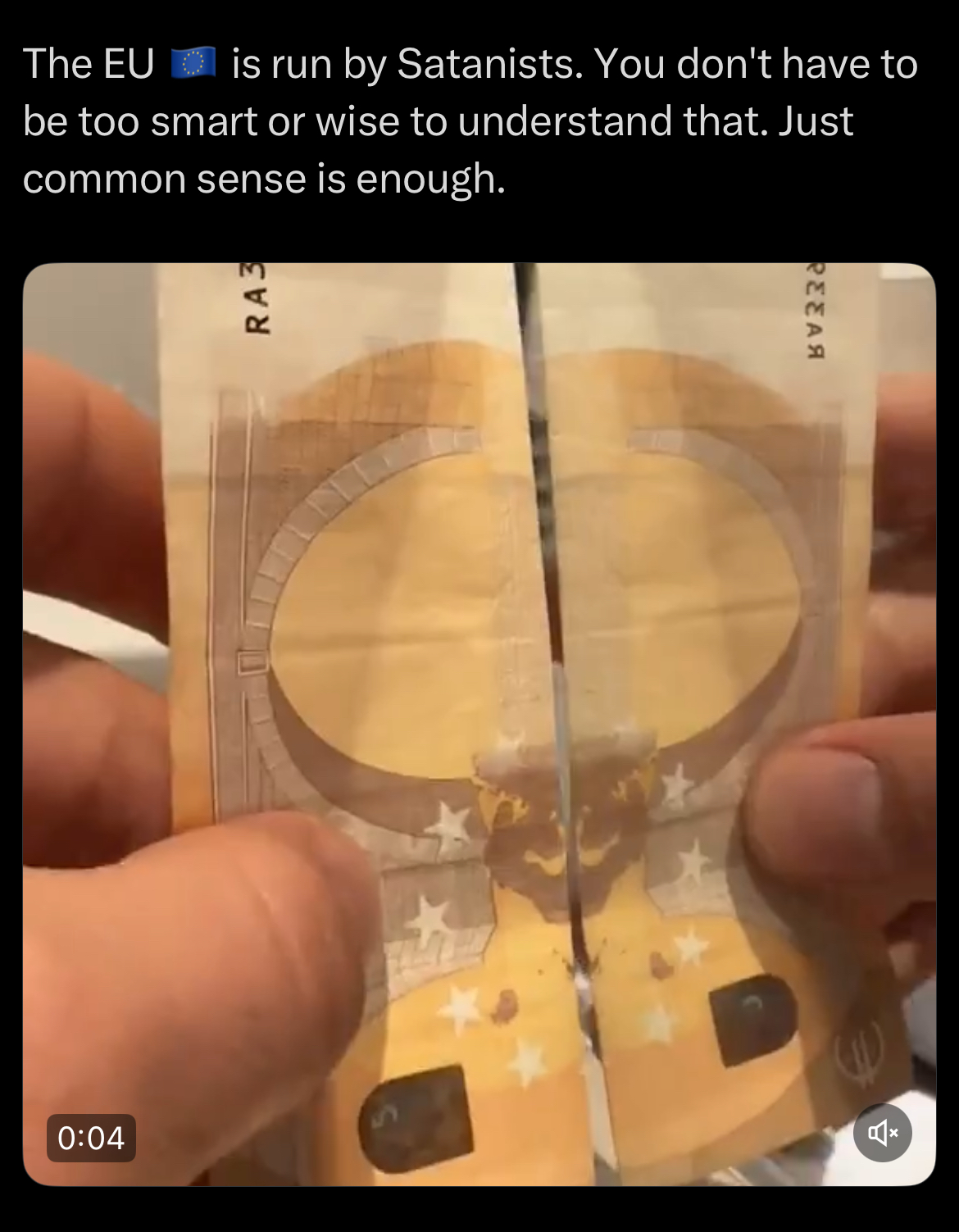 >>524052875>The EU is ran be satanists because if you fold this paper note in this one particular way it sort of, kind of, makes a satanic image, if you squint a bit and use your imagination. Do you even realise how schizo this sounds to normal people anon?