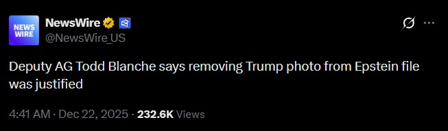 GOOD NEWS: Dep. AG Todd Blanche assures Trump was removed from the Epstein files for a good reason.