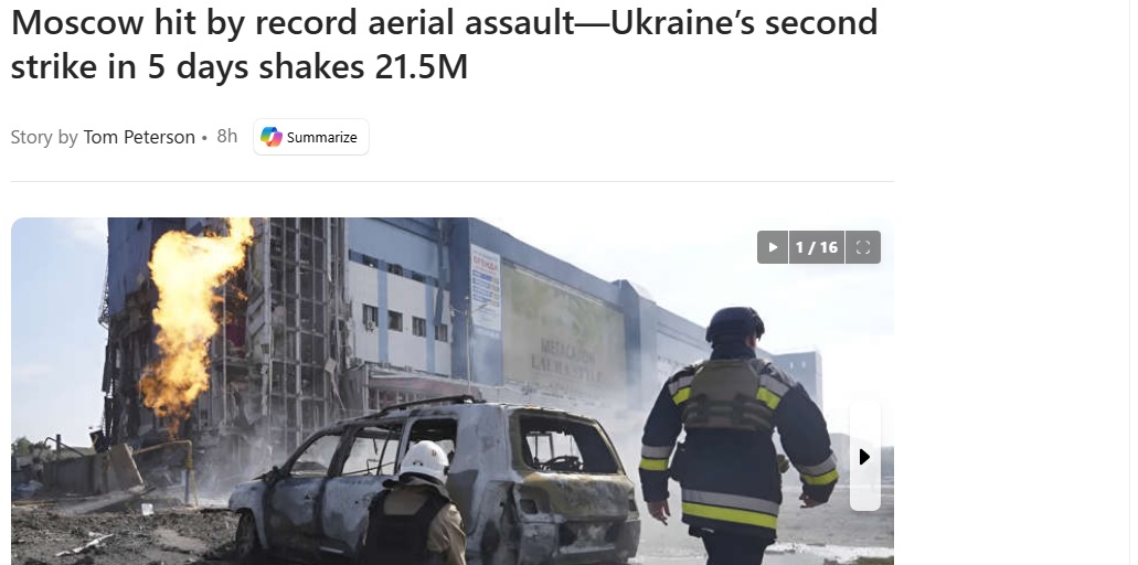https://www.msn.com/en-us/news/world/moscow-hit-by-record-aerial-assault-ukraine-s-second-strike-in-5-days-shakes-21-5m/ss-AA1SLz5VMoscow getting obliterated by Ukraine! Ukraine attacks Moscow! 21.5 million shakes !