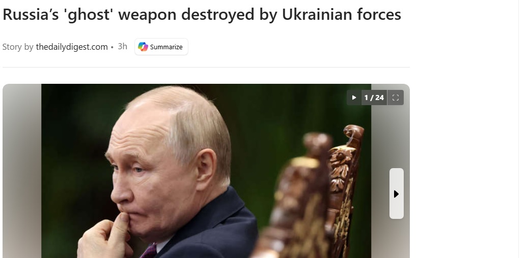 https://www.msn.com/en-us/news/world/russia-s-ghost-weapon-destroyed-by-ukrainian-forces/ss-BB1pINphThe UKRAINIAN ARMY has destroyed Russia's ghost weapon! Huge blow to Russia and Putin