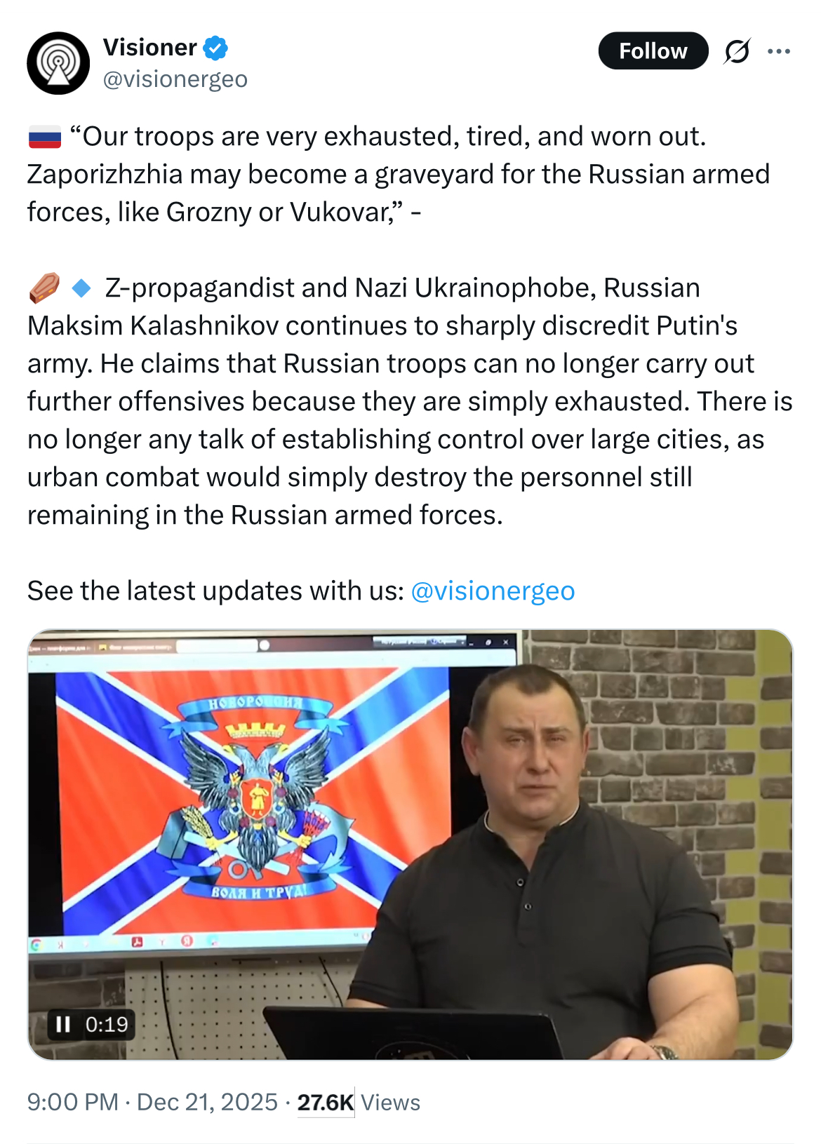 >>524082694Every time headlines like this are published, it's always an anonymous source or a retired military/intelligence official who likely no longer holds a security clearance. I hope the actual interns who come up with this shit are getting paid.