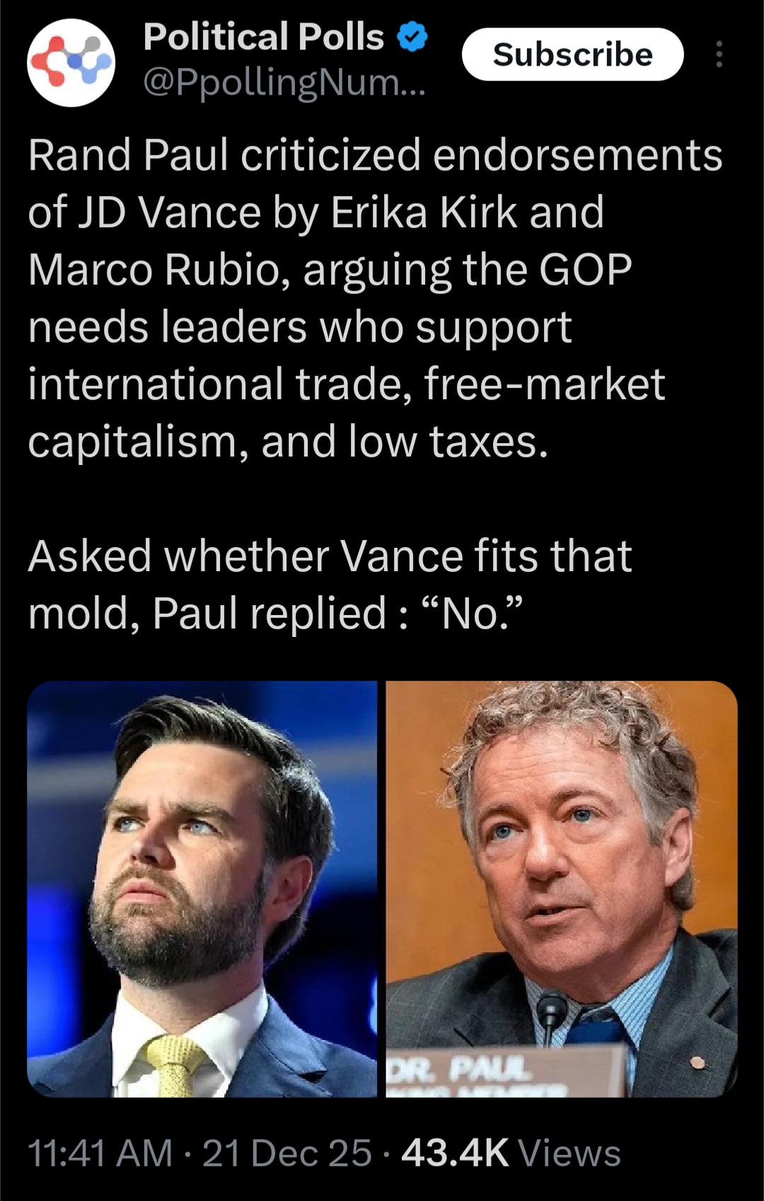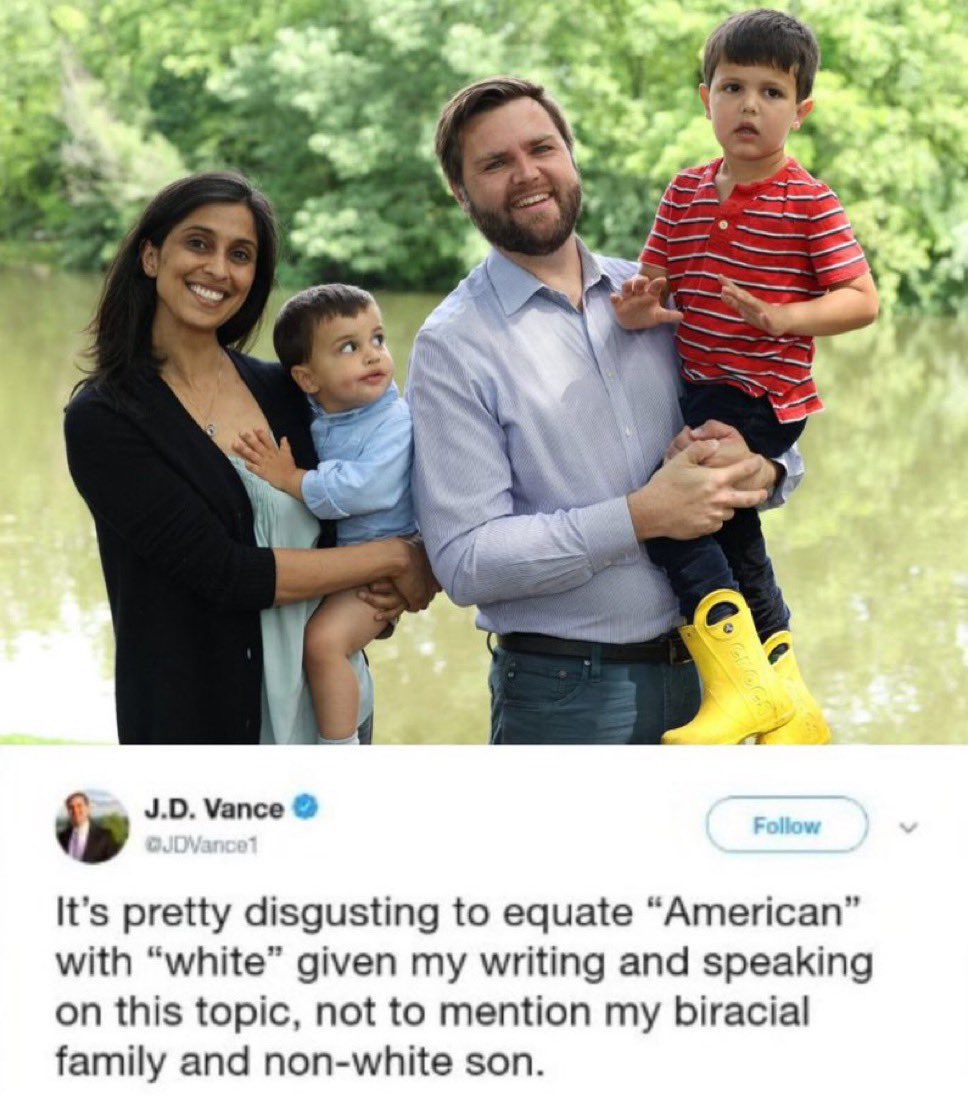 >>524085231Vance is so dishonest when he shills Christianity even though his wife is still pagan. Not only that but Vance is honestly fucking over Ohio Republicans by being the sole person responsible for Vivek's Ohio governor campaign. Make no mistake. Both Vance and Vivek are essentially clones of each other, especially in ideology. After all, Vance only became conservative in 2022. Prior to 2022, Vance was a California Democrat just like his Indian wife.