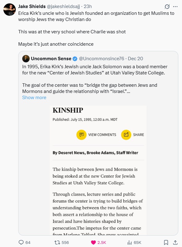 >>524089183Coordinated attempt at trying to imply Israel isn't involved in killing Charlie Kirk.