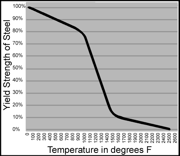 >>524088210fpbpTypical home or office building fires run about ~1000-1200 F. Structural grade steel loses about half to two-thirds of its effective yield strength at those temperature. That plus structural damage and poor design fucked the three towers that collapsed.