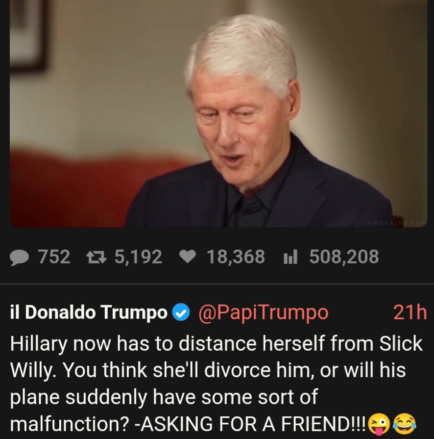 >>524095389pedocrats are already saying that it doesn't matter what bill clinton did because it was a long time ago and he's so old now