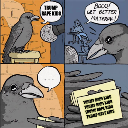 >>524108096> Does that mean he fucks kids? No, not necessarily.>I know he sucks but hes not all that bad...Trump has turned Americans into battered housewifesSAD!