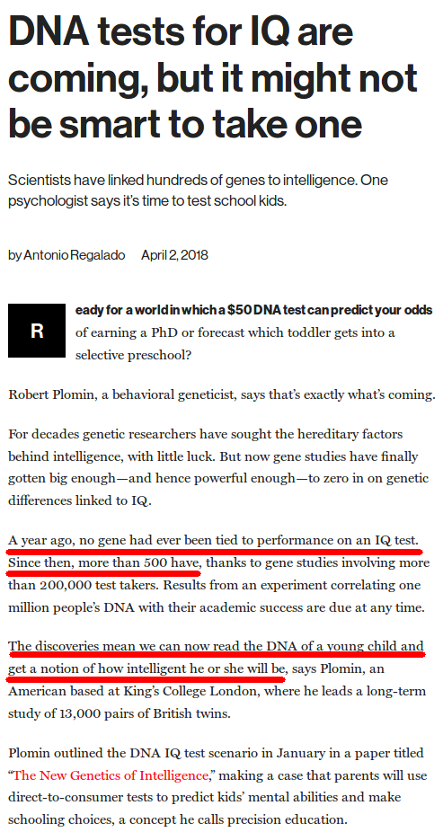 Let's talk about the state of the "intelligence" debate. Is intelligence a genetic, or environmental phenomenon?Perhaps the most significant study on this matter is the Minnesota Twin Experiment:>https://pdfhost.io/v/8wIYyGVPV_bouchard1990Which studied identical twins separated at birth and raised in different homes. By comparing them to fraternal twins raised in the same home, estimates of genetic influence could be determined. It was found that most psychological traits were around 40% heritable, but intelligence specifically was 70% heritable. Meaning that intelligence is overwhelmingly genetic. More recent estimates place this number as high as 86%.>https://www.ncbi.nlm.nih.gov/pmc/articles/PMC4002017/This means that intelligence is one of the most heritable traits we know of. even more so than total body height.Anecdotally, it was found that many of the twin-pairs had extreme similarities in their lives. With similar habits, similar medical conditions, similar hobbies. They took similar jobs, married similar people, and even named their children similar names.https://www.youtube.com/watch?v=3hpOLZdy8QAhttps://www.youtube.com/watch?v=qw3S35wGgT8https://www.youtube.com/watch?v=Q0xk--PhhHA