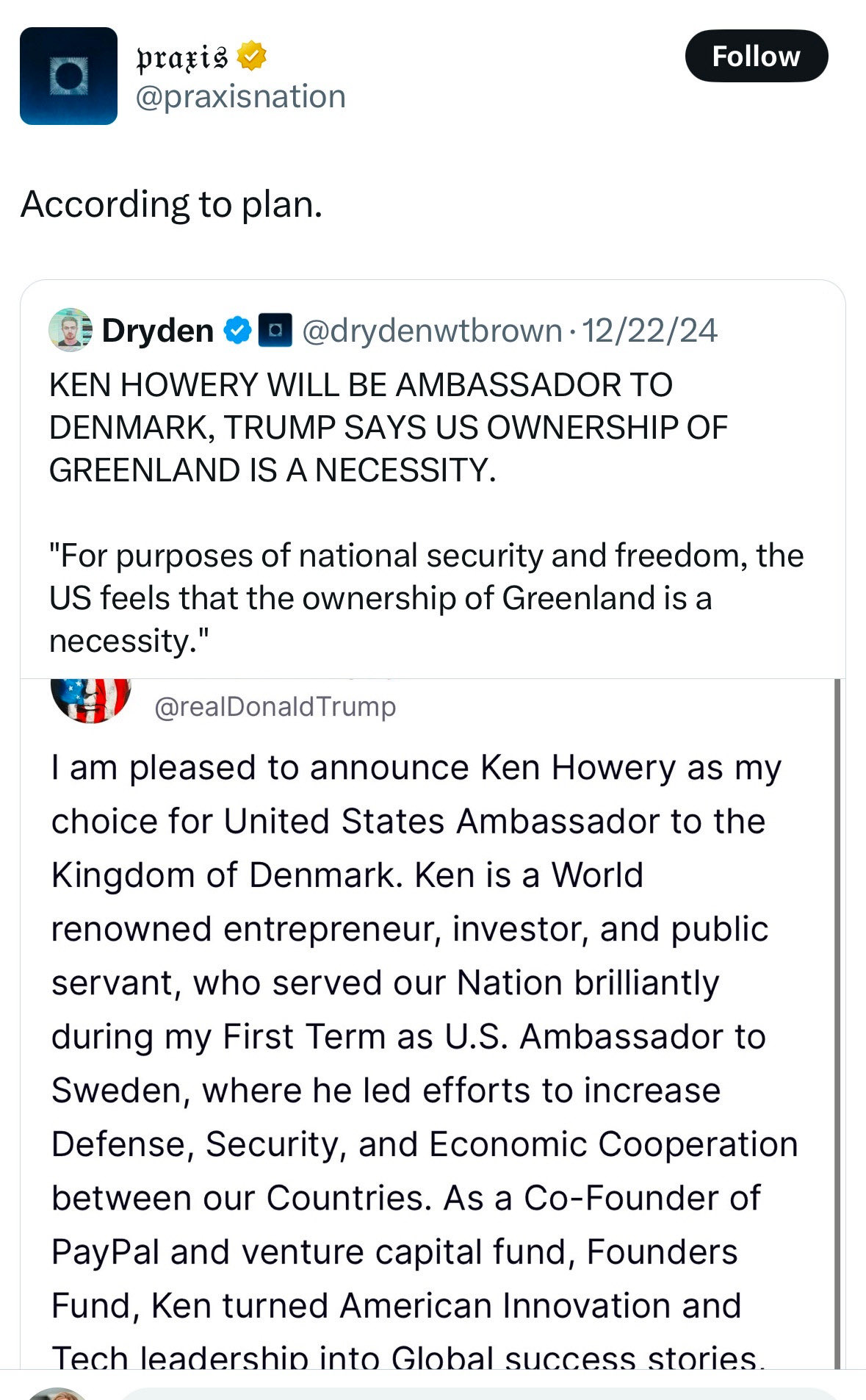 200+ posts and no one has mentioned all this Greenland bullshit is part of Peter Thiel's Praxis Project micronation nonsense.