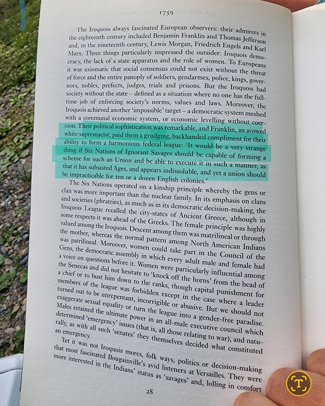 >>524137520>>524137624he does! He writes this: >The North of Europe furnishes subjects enough for comparison with them, and for a proof of their equality. I have seen some thousands myself, and conversed much with them, and have found in them a male, sound understanding. I have had much information from men who had lived among them, and whose veracity and good sense were so far known to me as to establish a reliance on their information. They have all agreed in bearing witness in favour of the genius of this people. As to their bodily strength, their manners rendering it disgraceful to labour, those muscles employed in labour will be weaker with them than with the European labourer: but those which are exerted in the chase and those faculties which are employed in the tracing an enemy or a wild beast, in contriving ambuscades for him, and in carrying them through their execution, are much stronger than with us, because they are more exercised. Basically he is saying that they have "male", sound understanding, and that from men who have lived among indians, they generally had good judgement, he goes on to say that European laborers are generally stronger, but this is due to environmental reasons, and that Indians were better suited for hunting and tracking since that's what they practiced.He seems to have really believed in the "nurture" side of the nature vs nurture argument.