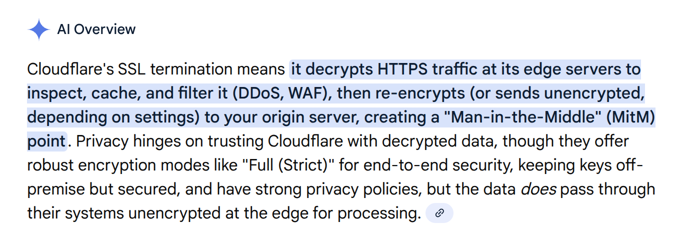 >>524138221doesn't cloudflare do ssl termination so they can has your unecrypted traffic?