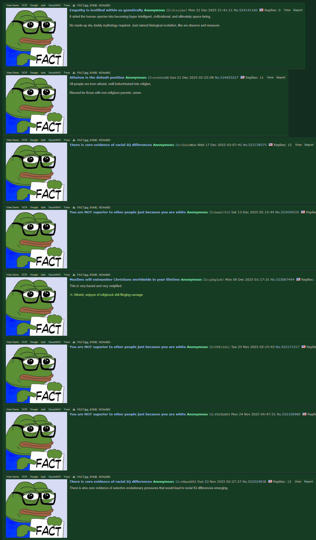 >>524141160>Just natural biological evolution, like we observe and measure.As a psychopath, I would like to point out that you r science is incorrect.Repent.Get right with Jesus.He is the only Way.