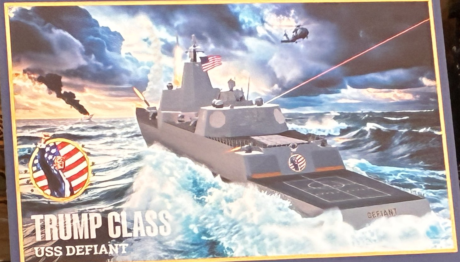 >President Trump will announce Monday that the Navy is to build a new “Trump-class” battleship, which will become the centerpiece of the president’s vision for a new “Golden Fleet,” according to a U.S. official.>He has been personally involved in crafting plans for the Golden Fleet, The Wall Street Journal previously reported. The first ship in the class will be the USS Defiant, the official said.>Over the past few months, a Navy team developed and approved requirements for the new class of large-surface combatants, according to the U.S. official. The new ship will weigh 30,000 tons, larger than current destroyers, and have the ability to add future weapons like electromagnetic rail guns and directed energy lasers, according to one of the people familiar with the discussions.Battleshipbros, we are so back.