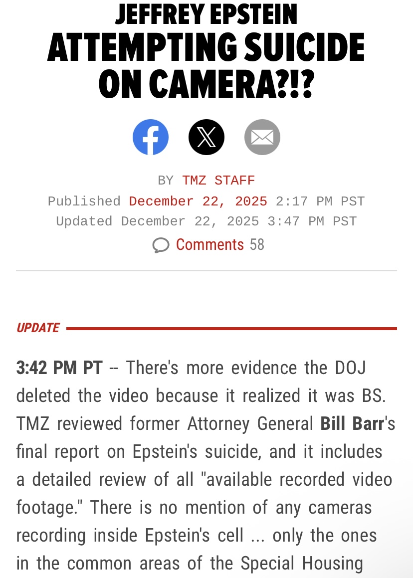 DOJ removed itAHAHAHAHAHAHAHAHAhttps://www.tmz.com/2025/12/22/video-shows-jeffrey-epstein-trying-to-kill-himself-jail-cell/