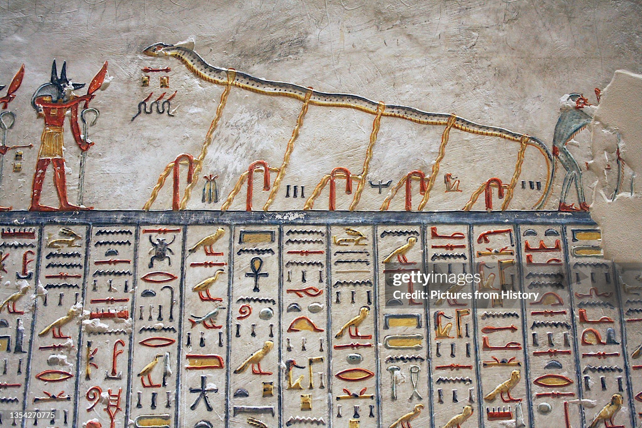 In Egyptian mythology, Apep was a serpent demon who represented the forces of chaos, death, and disorder. As such, he was the mortal enemy of order, personified as the goddess Ma’at, and light, as incarnated in the form of Ra. This adversarial construal of the demon is evidenced in various surviving texts from the Middle Kingdom period onwards (ca. 2000-1650 B.C.E.), including the Book of the Dead and the Book of Gates—both of which are concerned with the geography and mythology of the underworld. (Photo by: Pictures from History/Universal Images Group via Getty Images)