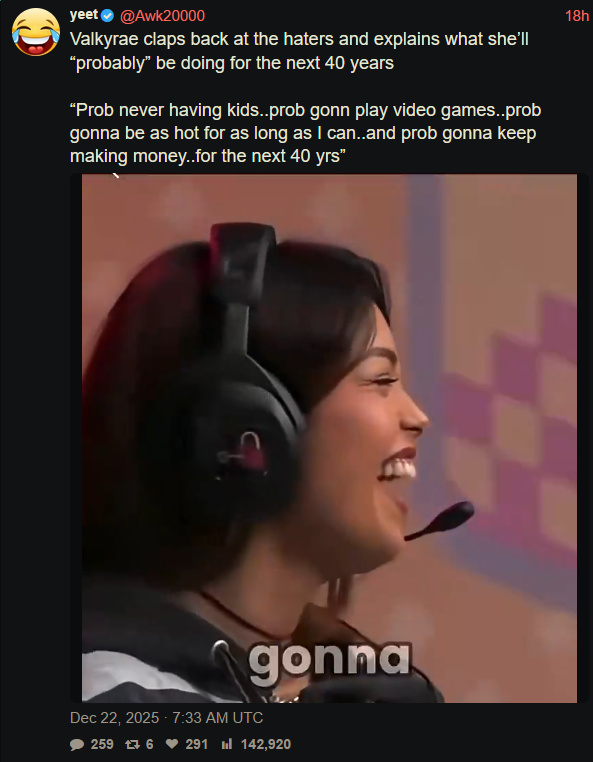 >>524159060I don't have to. She'll be writing blogs about how lonely she is within 5 years.