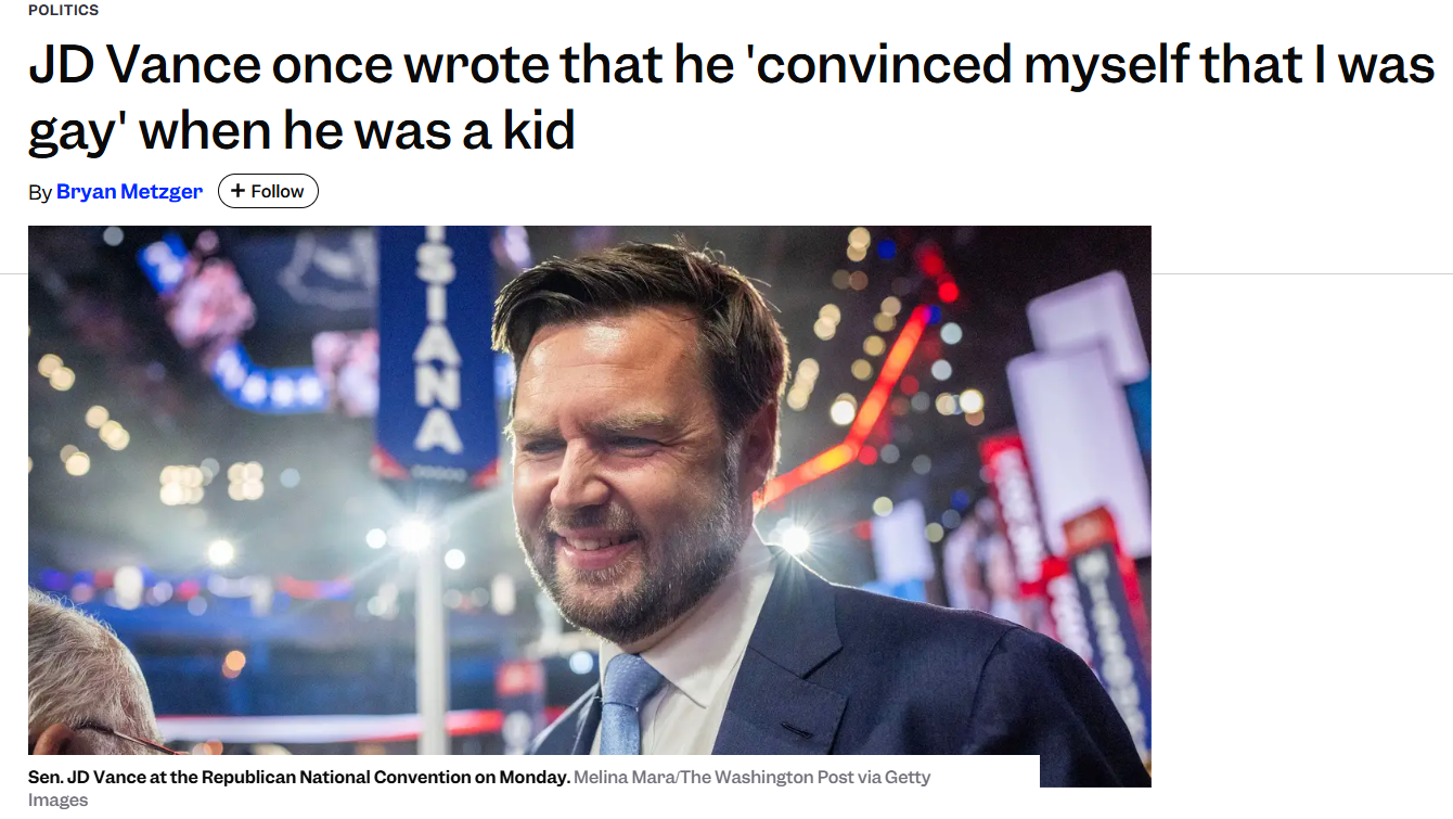 What the FUCK is MAGA even on anymore?https://www.businessinsider.com/jd-vance-convinced-himself-gay-hillbilly-elegy-trump-vp-2024-7