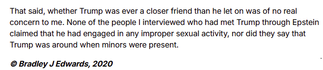 >>524177681You're citing claims by Wolff, but then disregarding parts of the very same statement that make it clear that Trump was well aware of Epstein's proclivities at the very least, while pretending he was oblivious. You can't pick and choose.Epstein was definitely operating since the '90s, but, even going solely by the handful of victims involved with the 2006, the timeline still doesn't absolve Trump.>You wouldn't know, because you contributed nothing to it.None of it holds up to scrutiny. The combination of sake codewords and adrenochrome schizophrenia did nothing but make it harder for people to accept the reality of actual "elite" pedophile rings.