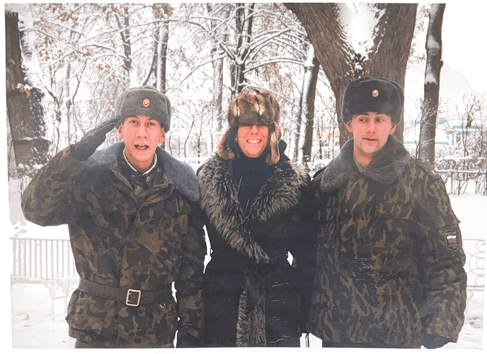 ghislaine maxwell with unidentified russian soldiers on a trip to moscow